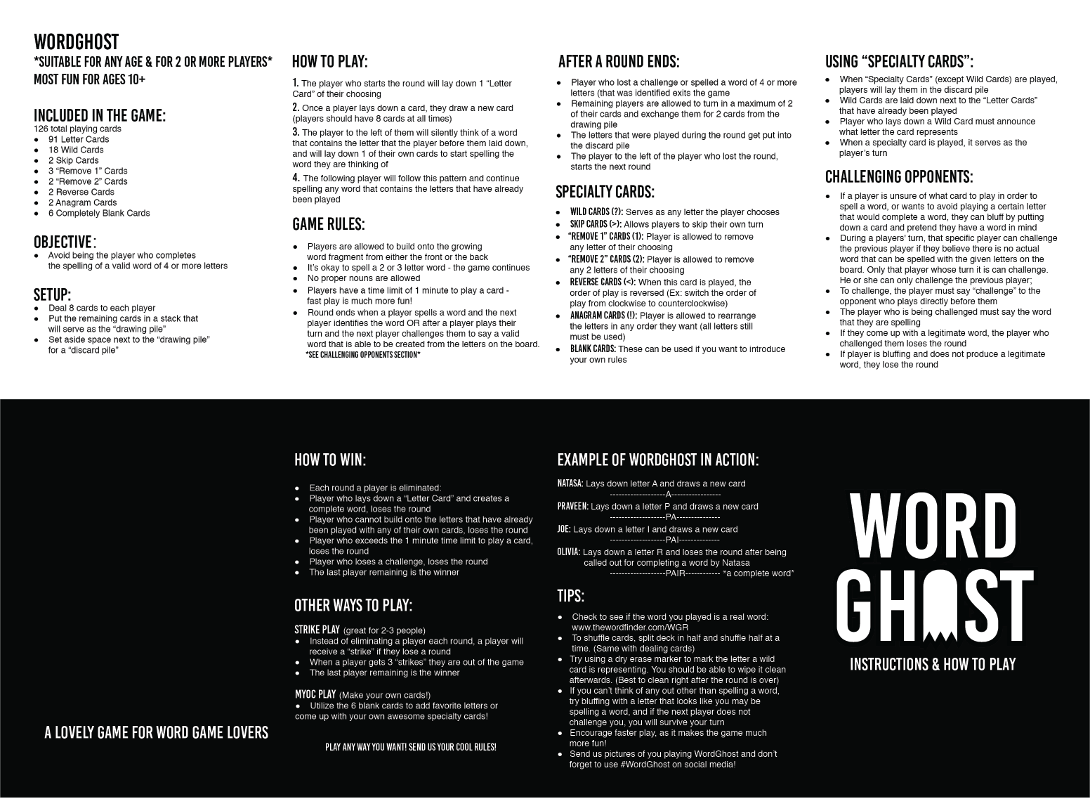 Rule Variations There are technical infinite rule variations to the game which you can come up with. Here are two that we like: